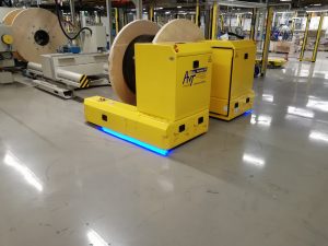 Bekaert était à la recherche d’un transporteur de tourets de câble compact pouvant être manœuvré entre les machines de production qui offre un espace d’évolution restreint.