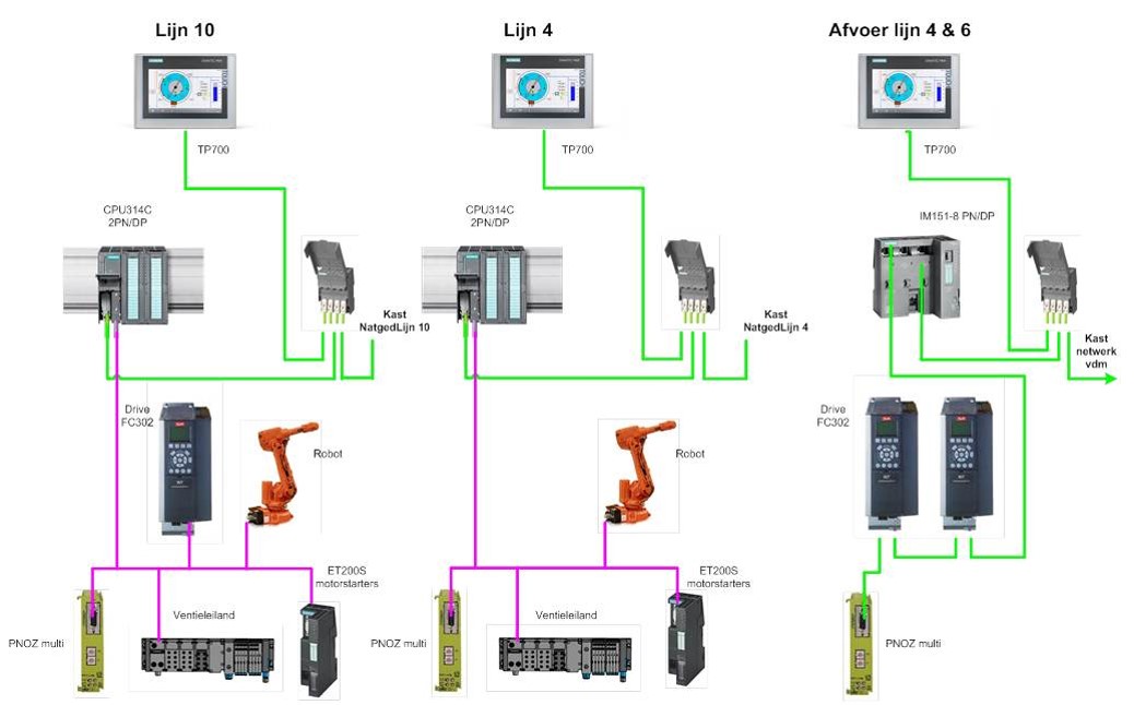 Het project betreft het palletiseren van vetblokjes, afkomstig van 2 productielijnen met robots, en het transport van de pallets naar de underground door middel van een gemeenschappelijk transportsysteem met liften.